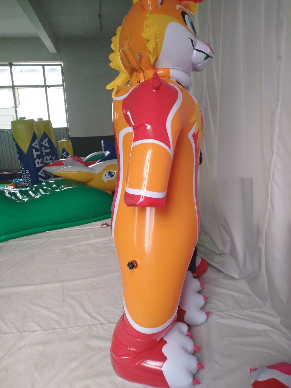 This is my first inflatable suit and I’m very satisfied! The head is very comfortable and easy to wear. It surprised me a lot how easy is to move around while wearing the head and looking around through the eyes. The build quality is nice, I like especially the use of coloured vinyl and minimum paint. It gives a nice vinyl-like smell right when unpacked. Even the paws are like a piece of art, the combination of glossy and soft matte vinyl on pawpads is very nice to touch.