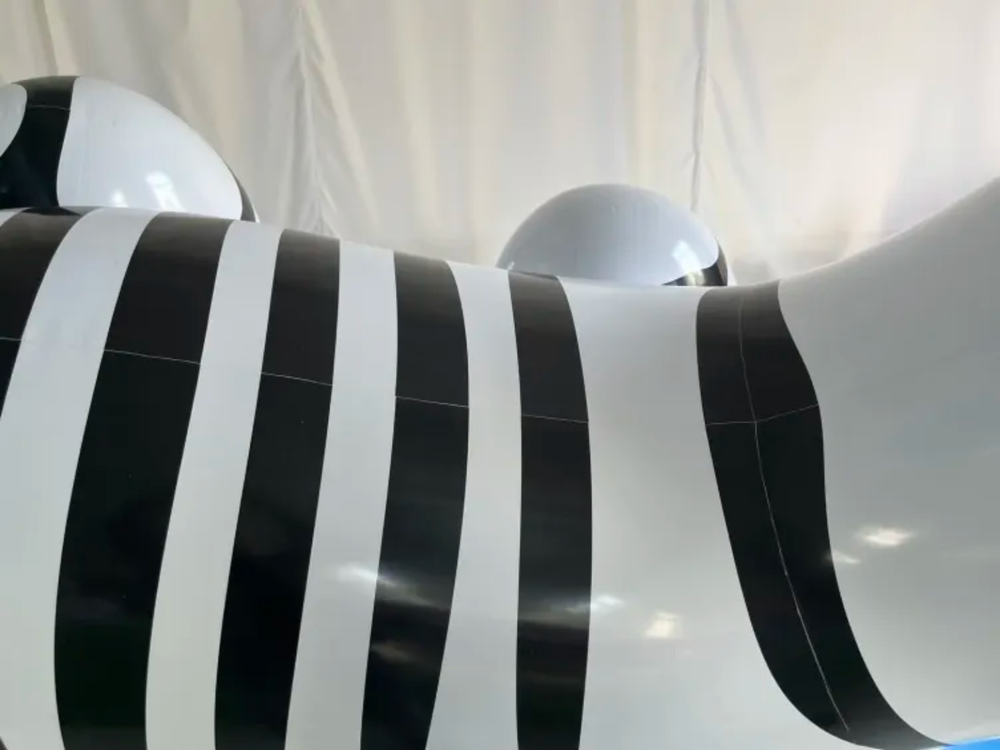 With its dynamic design and bold black and blue graphics on a clean white base, this inflatable stands out as a true centerpiece for collectors and enthusiasts. The fully reinforced seams ensure long-lasting durability and exceptional air retention, even with extended use.